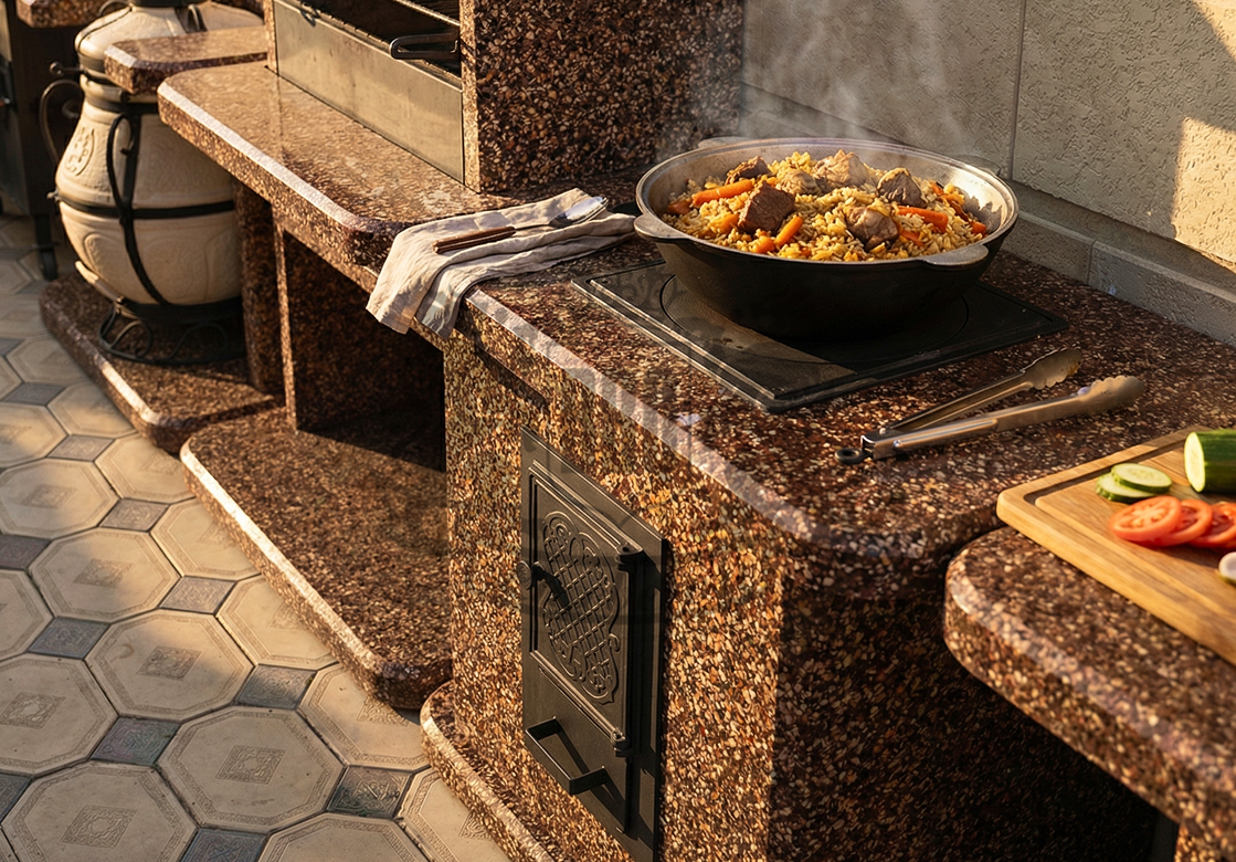 Печь для казана в фактуре «Марс» — выбор для любителей космического дизайна. Яшма создаёт красно-коричневые переливы, напоминающие марсианские пейзажи. Идеальна...