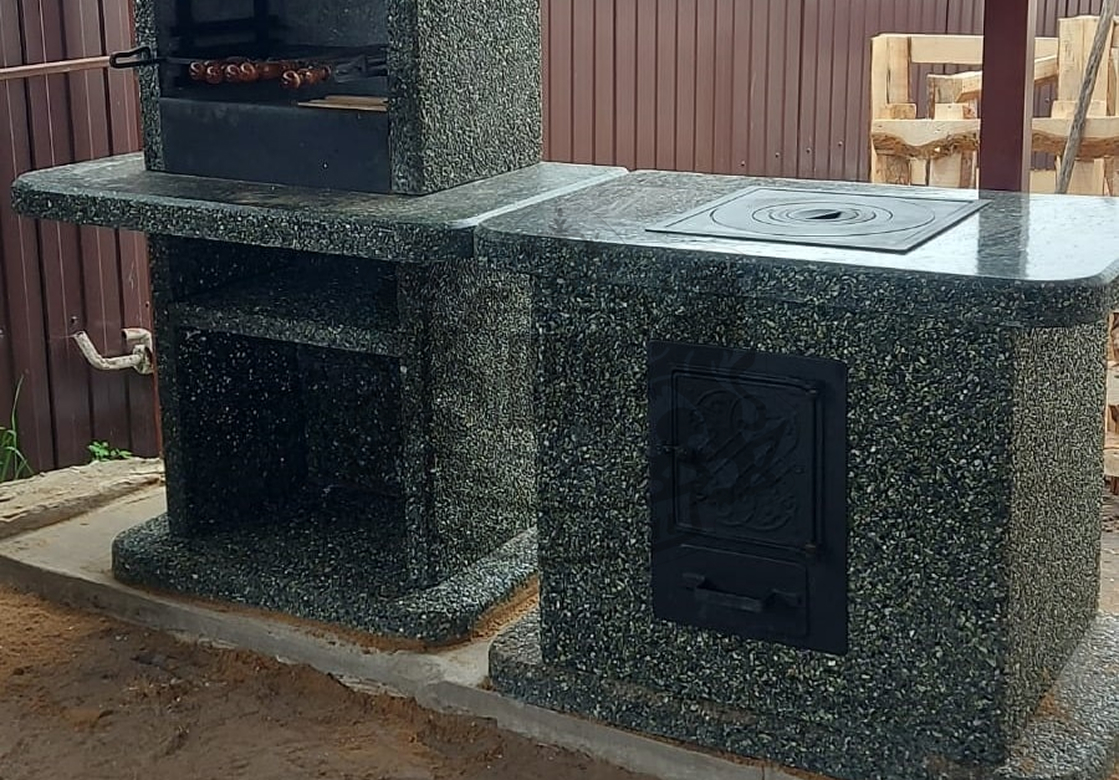 Создайте зону для шашлыка на даче добавив печь под казан в фактуре “”Ночное небо”” Габбро-диабаз и мрамор создают чёрно-белый контраст,...