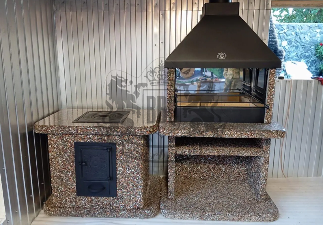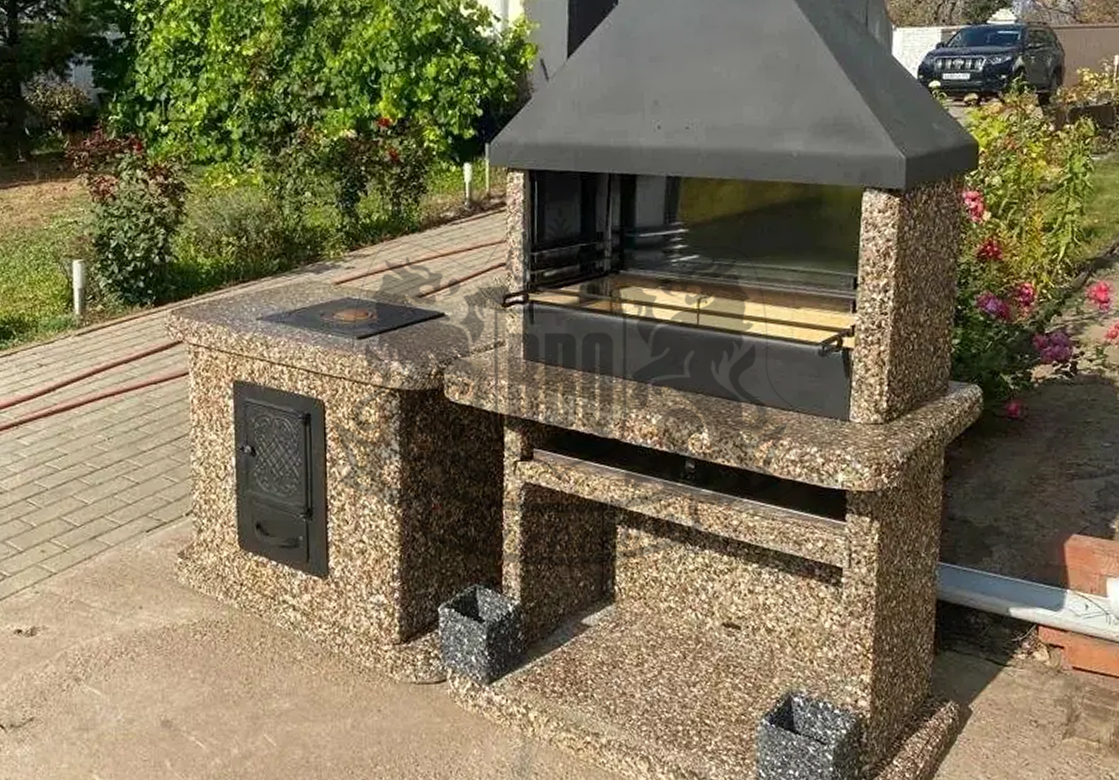 Печь под барбекю комплекс в фактуре «Змеевик» — это долговечность и стиль. Змеевик и габбро-диабаз создают глубокий зелёно-чёрный градиент. Чугунная...