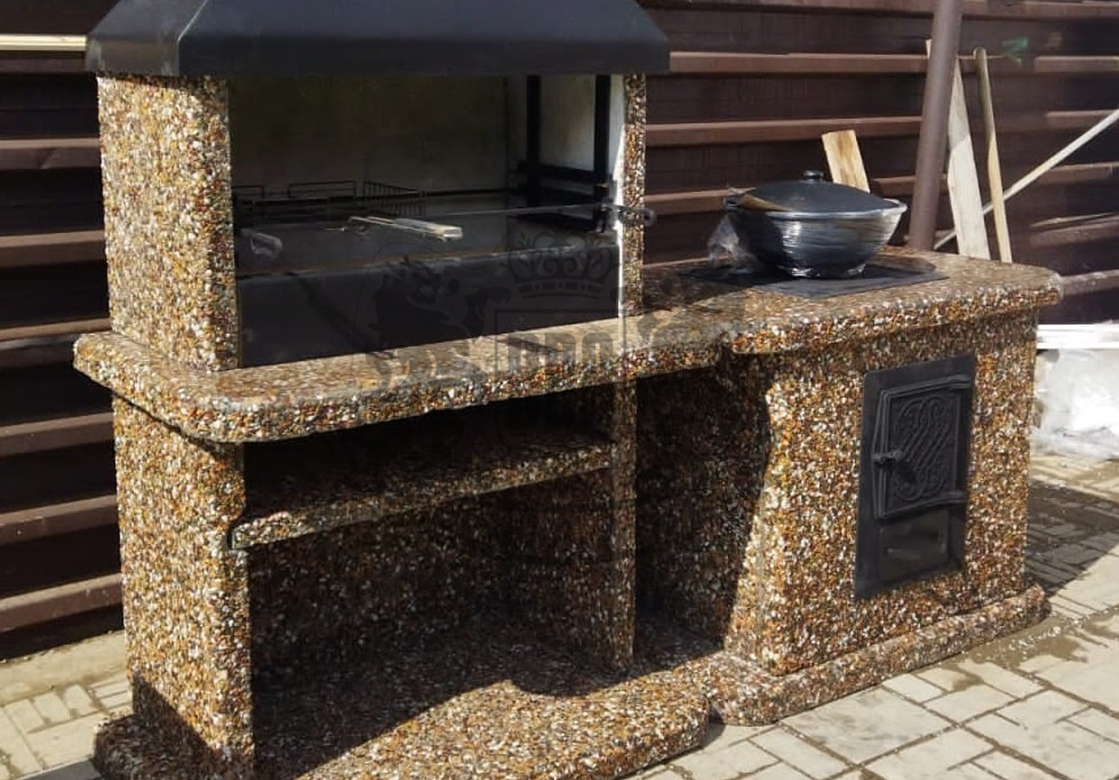 Печь под казан в фактуре «Горные цветы» — это барбекю из камня, созданное для идеального томления блюд. Многоцветная фактура (мрамор,...